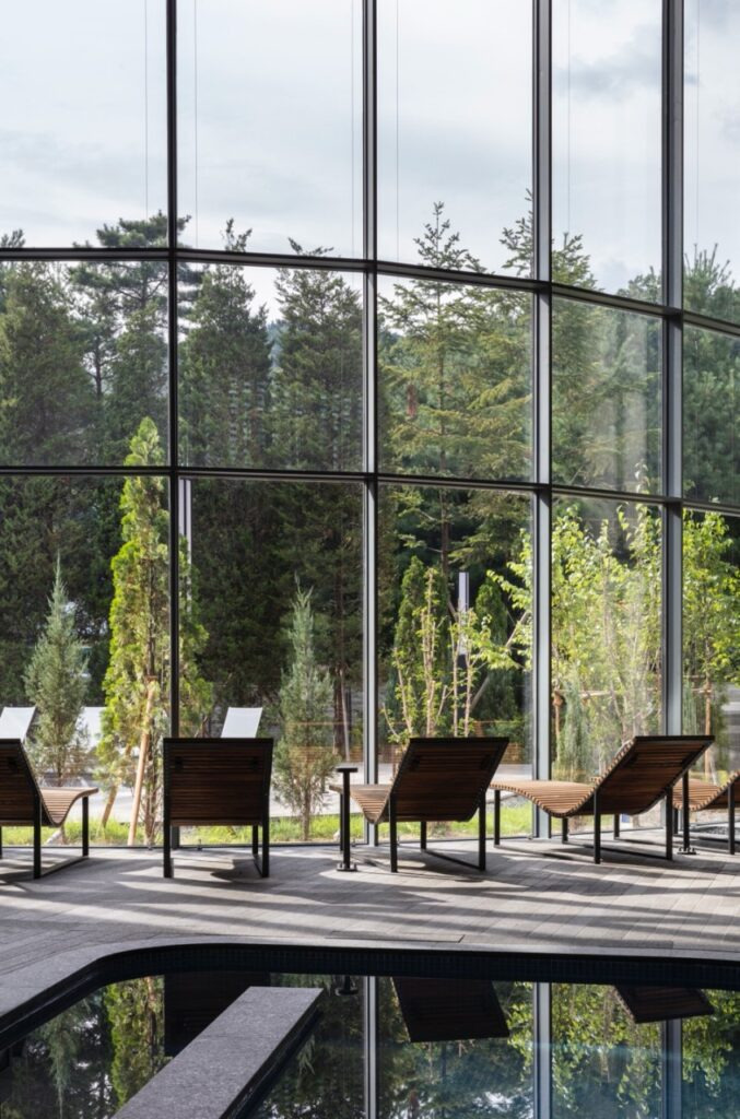 이곳의 진가는 스파 공간에서 드러납니다. 건물의 1,2층을 과감하게 터서 만든 높은 천고. 뻥 뚫린 통창 너머로 우면산 자연이 파노라마처럼 펼쳐져요. 낮에 방문하면 자연광을 그대로 맞으면서 스파를 즐길 수 있죠. 허브탕, 라벤더탕, 노천탕 등 피로 회복과 디톡스를 돕는 12가지 테마의 욕탕, 사우나로 구성되어 지루하지 않게 다채로운 휴식을 경험할 수 있어요.